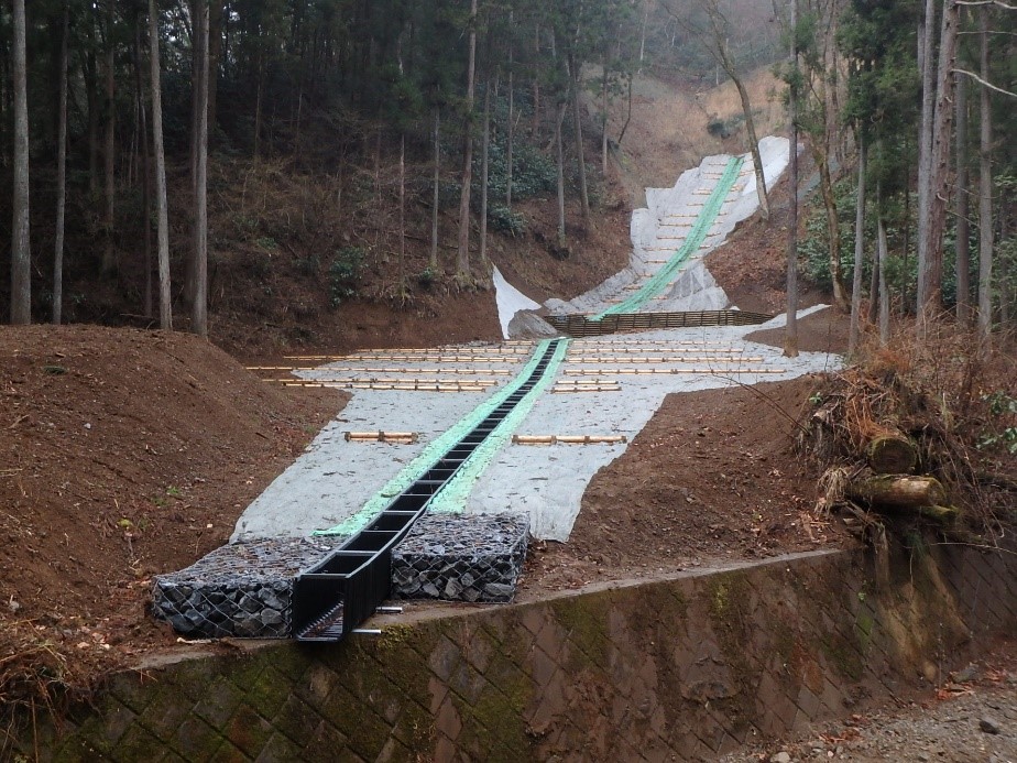 本工事では、被災箇所の植生の回復を目的として、種子付きのシートを設置しました。7月に点検したところ、緑化が順調に進んでいることを確認しました。